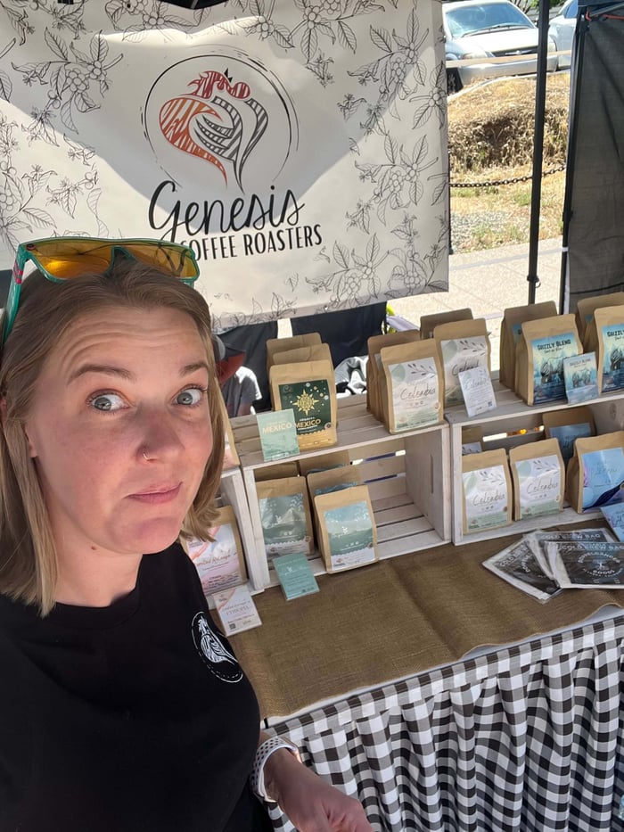 We initially planned to launch Genesis in December 2021, but both of us had COVID, losing our sense of taste and smell, which made roasting rather difficult. Consequently, we postponed our launch to February 2022. At that time, we had no idea if this endeavor would be just an expensive hobby or transform into the business we imagined. Our first farmers market in Placerville was in May, and I was filled with imposter syndrome. I was incredibly nervous, having only roasted for a few months without formal training—just a mix of YouTube tutorials and trial and error. The first market was a whirlwind, but we received fantastic feedback from our customers, helping us settle into the season.